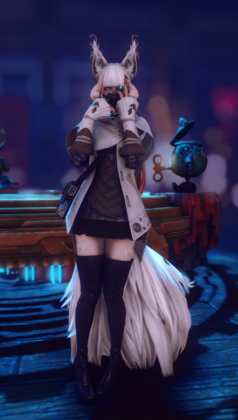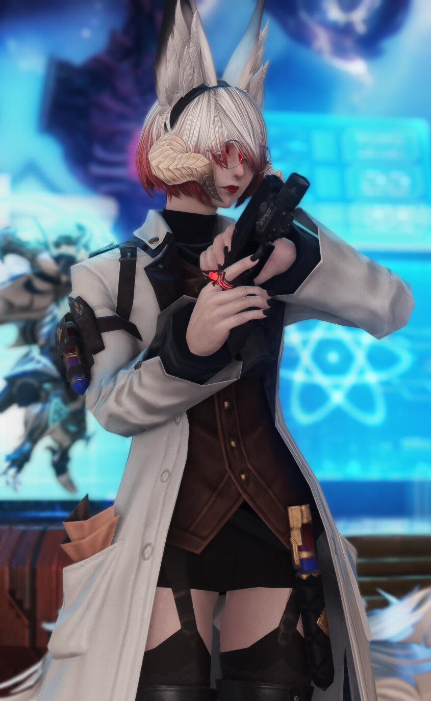 Her main focus follows the research, design and construction of automatons of various shapes and sizes for any job and purpose one could dream of! She also dabbles in the studies of fusing Magitek with organic, using Allagan data when she can get her paws on it alongside data stolen from Garlean scientists.Rumor has been going around that she has been involved in a secret project to do with the development of an automaton in the form of a miqo'te man so detailed that one could not even tell he isn't of flesh and blood.The vixen also dabbles in alchemy to create curious potions and poisons for her clients. She is also a creator and supplier of various types of drugs of incredible strength. Sometimes she even partakes of them herself.