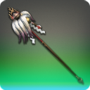 A long staff is carried wherever she goes, decorated with bells and Shirakawa style shide. Several white tails hang from it as well, their tips blood red and almost seeming to writhe at times. A curious item indeed!