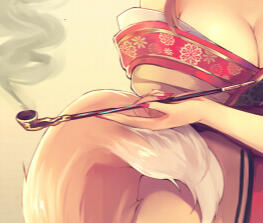 She also carries a small kiseru with which she smokes an unusual substance that smells oddly sweet, she refuses to say what it is.