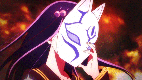 Traditional Kitsune mask - Often worn to cover her face but sometimes it will be tilted to the side of her head. She generally wears this when she has her ears glamoured away, giving a small hint as to her true self.